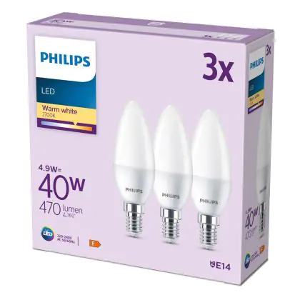 Description Lot 3x Philips Ampoule LED E14 Bougie Dépolie 5W 470lm - 827