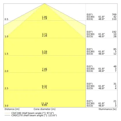 Le code couleur se compose de l'indice de rendu des couleurs (IRC) et de la température de couleur (Kelvin). Le premier chiffre indique le rendu des couleurs (1 = très mauvais rendu des couleurs, 9 = meilleure authenticité des couleurs). Le deuxième et troisième chiffre indiquent la température de la couleur. Exemple : Le code couleur "830" indique que la lampe a un bon rendu des couleurs (8) et une couleur de lumière blanche chaude (30 = 3000K). |