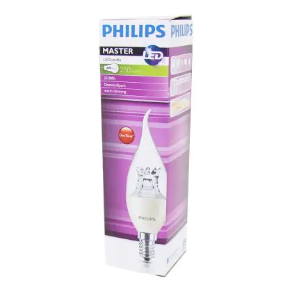Cette ampoule Philips MASTER LED Bougie E14 Bent-tip Couronne Claire 4W 250lm - 822-827 Dim To Warm | Dimmable - Remplacement 40W avec son efficacité lumineuse de lumen par watt vous permettra de profiter d’un éclairage de qualité. Avec sa durée de vie de 25000 heures, vous n’aurez pas à vous soucier de son remplacement avant quelques années.