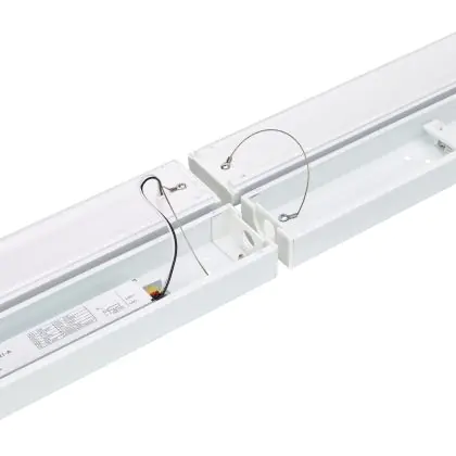 La réglette LED, Philips Réglette LED CoreLine BN126C 45W 5200lm - 840 | 150cm - 1x Câblage Traversant - Dali Dimmable est conçue pour remplacer les réglettes TL-D traditionnelles et permettant d’économiser jusqu’à 50% d’énergie. Très souvent utilisé pour l’éclairage d’entrepôts, d’usines, de parking et d’autres grands espaces extérieurs. Très simple d’installation, cette réglette de 150cm peut se fixer au plafond et au mur et projette 4000K - Blanc Froid, comme couleur de lumière. La Philips Réglette LED CoreLine BN126C 45W 5200lm - 840 | 150cm - 1x Câblage Traversant - Dali Dimmable dispose d’un indice de protection IP20 à l’eau et la poussière et d’une résistance aux chocs IK04.